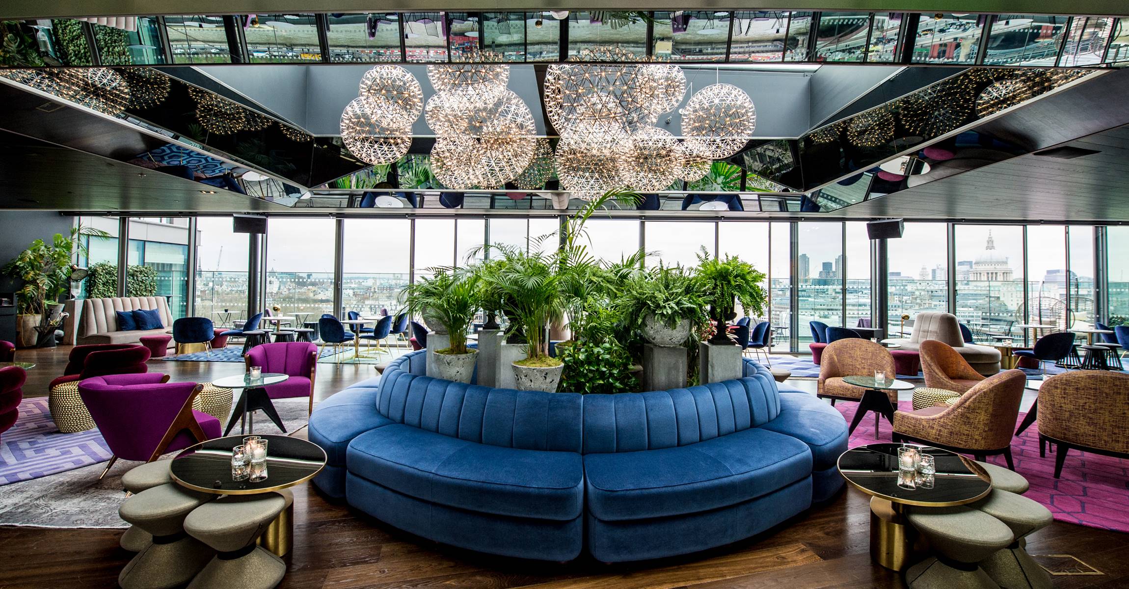 Our rooftop bar 12th Knot captures the vibrancy and energy of the South Bank, while adding a touch of effortless London glamour. Expect bright, eclectic décor and an open-plan layout that puts the panoramic views across the River Thames to landmark St Paul's at centre stage.