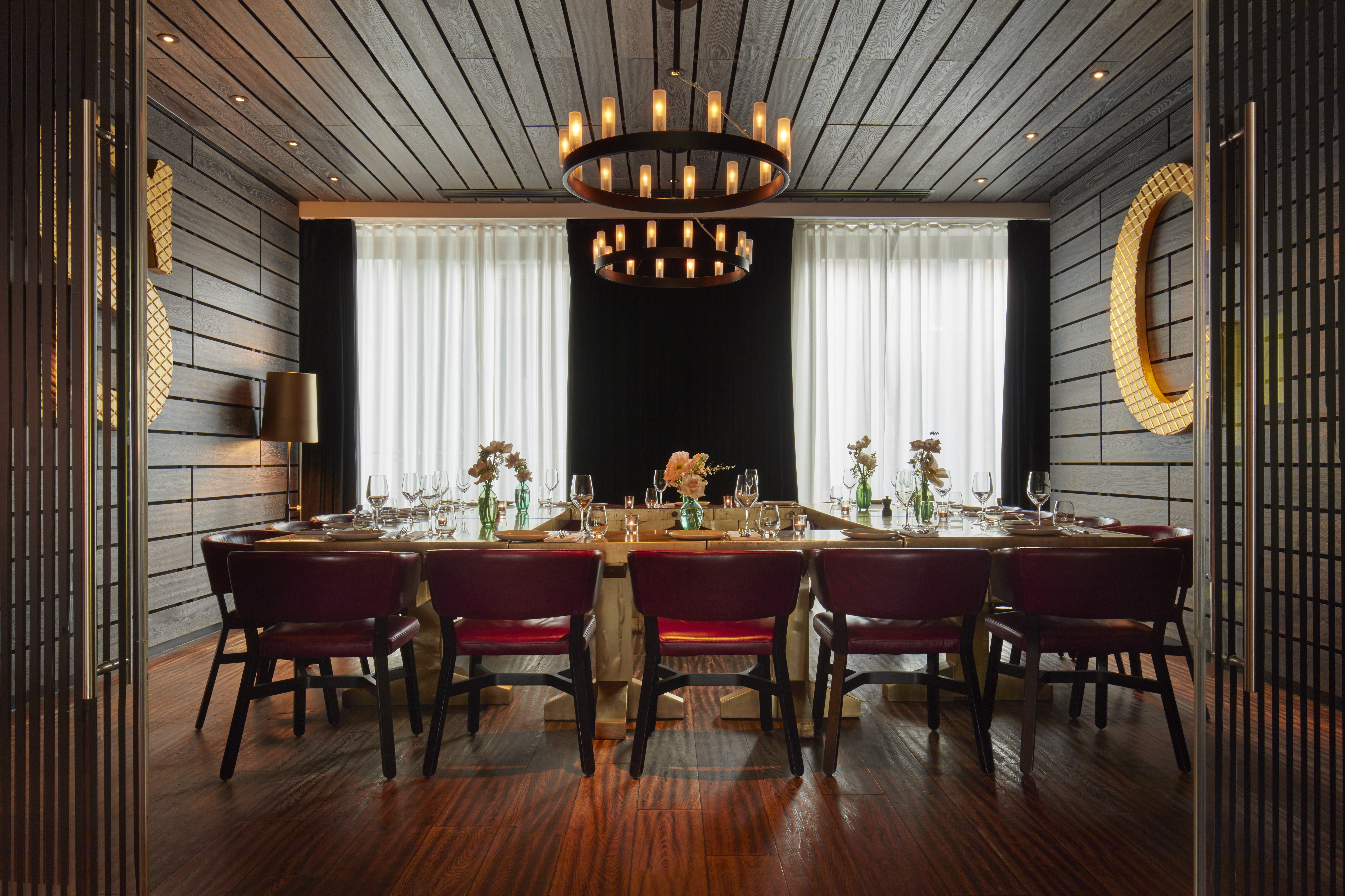 Located within Sea Containers Restaurant and with its own secluded south-facing terrace, the private dining room provides an intimate setting for up to 22 guests. Featuring bespoke gold dining tables, comfortable leather seating and custom-designed atmospheric lighting designed by Tom Dixon and Jacu Strauss.