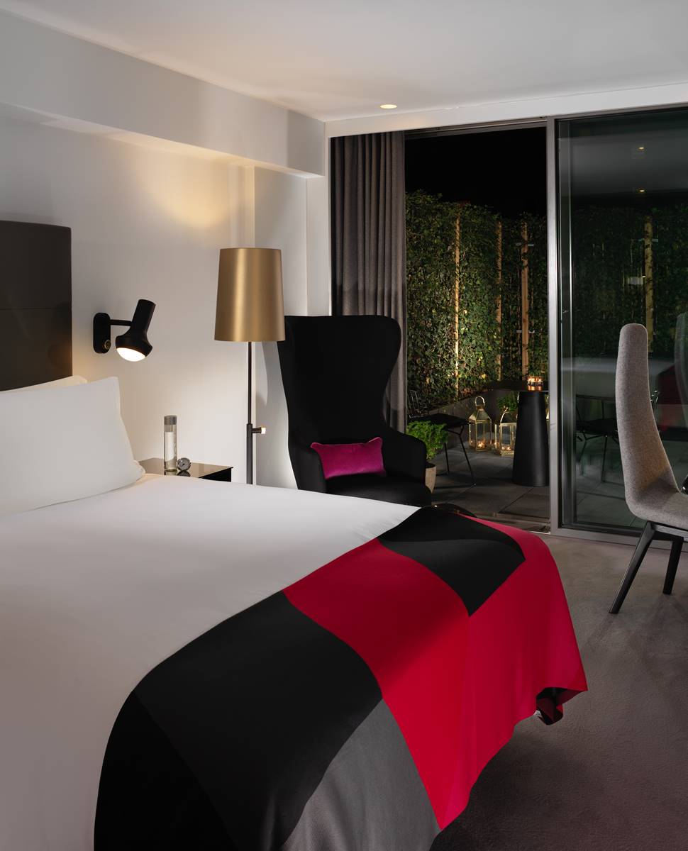 Inside, Tom Dixon-designed details meet home-from-home comfort; sumptuous beds, marble bathrooms with rainfall showers, and thoughtful touches that make every stay feel effortless.