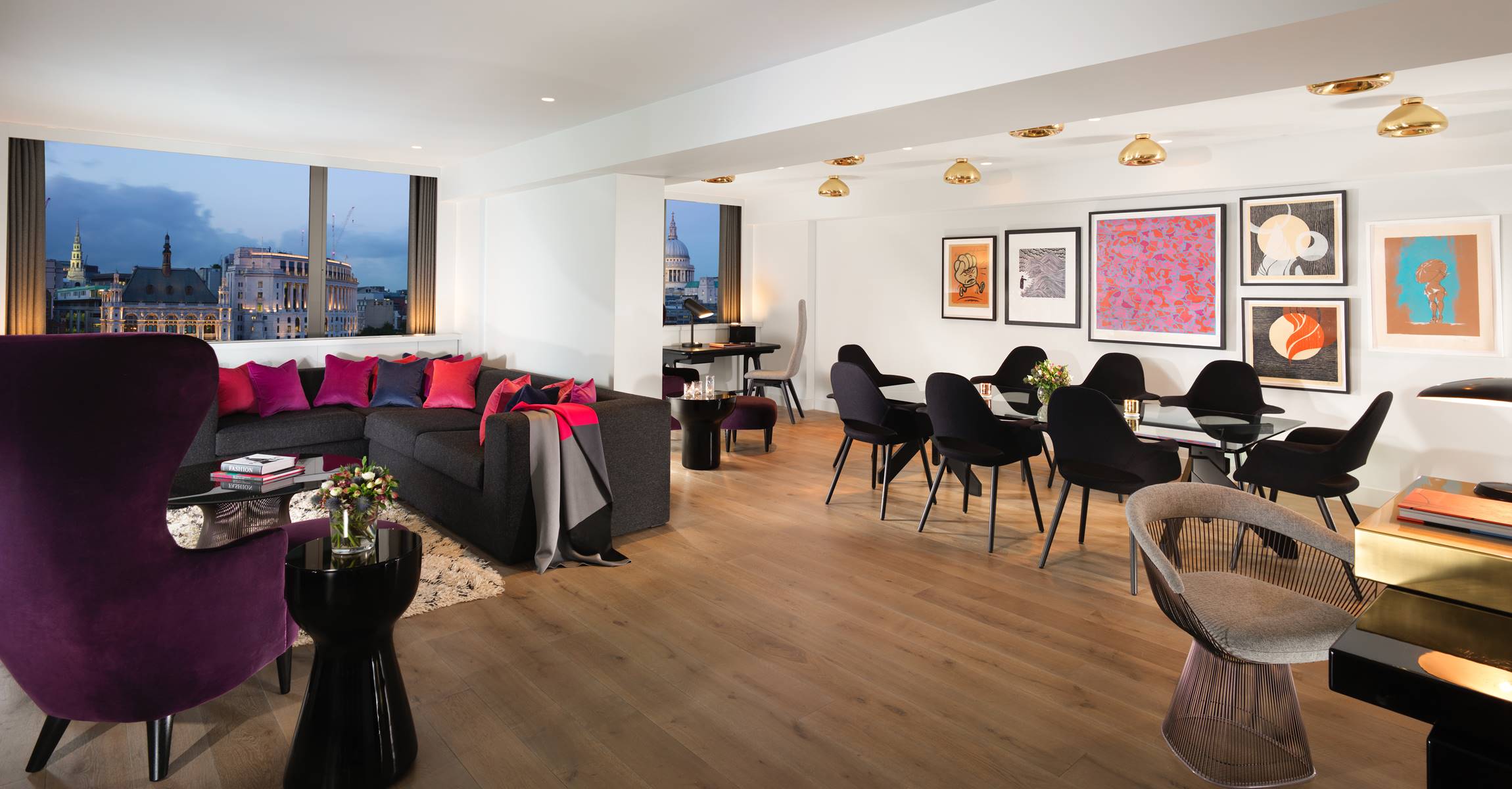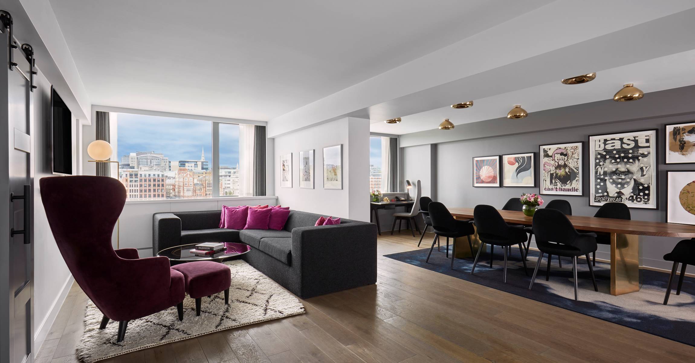 With a dining table for up to 16 guests, a fully stocked wet bar, and open-plan living and dining spaces, the Apartment is perfect for hosting. Wall-to-wall windows flood the space with natural light and frame London at its most iconic.