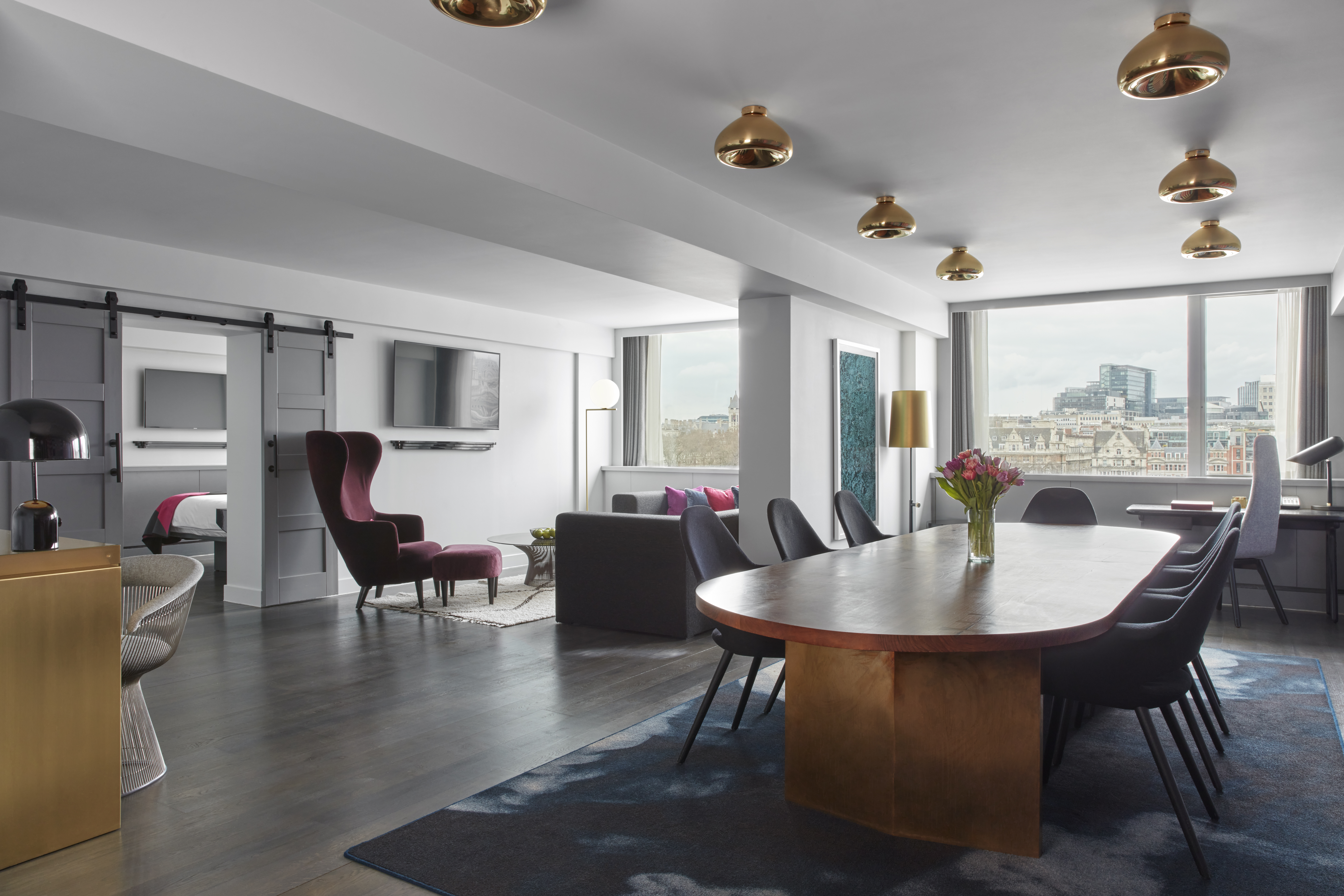 With a dining table for up to 16 guests, a fully stocked wet bar, and open-plan living and dining spaces, the Apartment is perfect for hosting. Wall-to-wall windows flood the space with natural light and frame London at its most iconic.