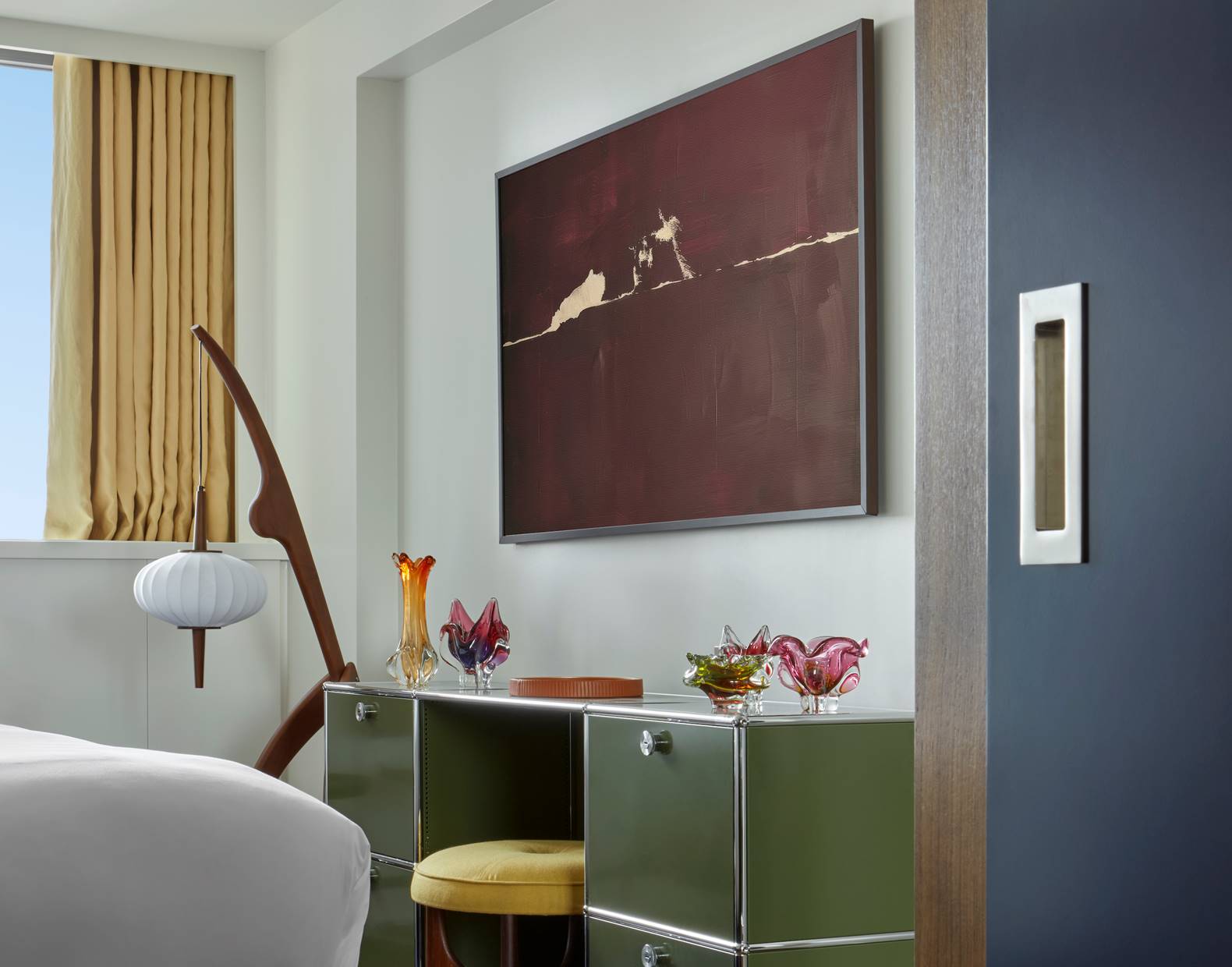 No two Cabin Suites are the same - each is a tribute to a different design movement, meticulously curated to transport you into a world of playful, vintage glamour. Rich storytelling, immersive details, and handpicked furnishings sourced from Vinterior make every suite a love letter to its era.