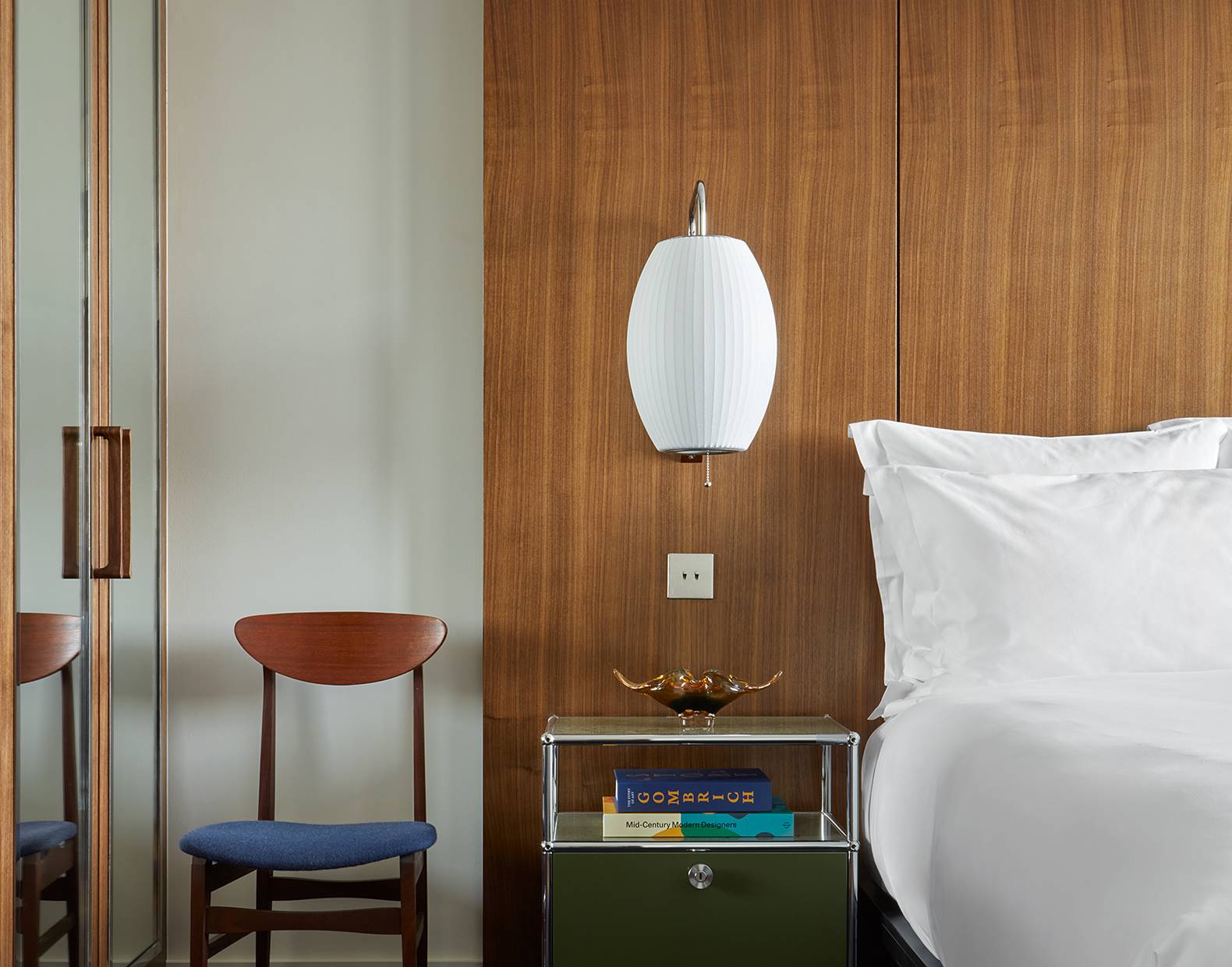 The Mid-Century Cabin Suite embodies this joyful, forward-thinking era, where optimism and innovation shaped everything from interiors to fashion. Designed with simplicity, utility, and bold creativity, this one-of-a-kind suite is a tribute to mid-century modernism at its most inviting.