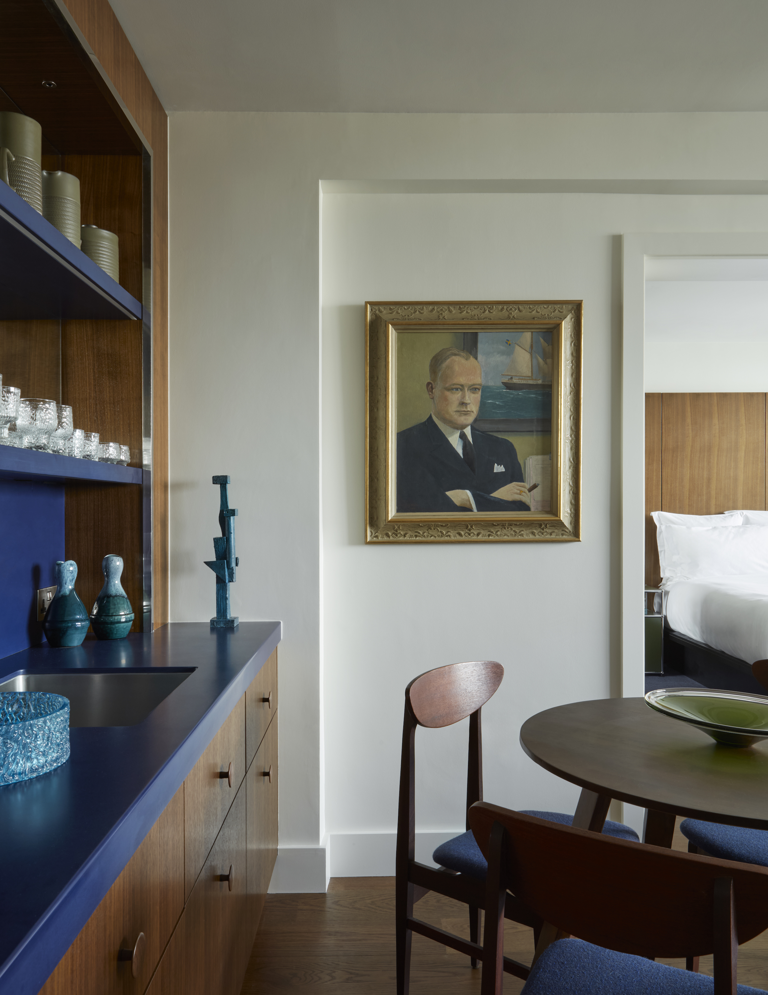 Our Mid-Century Cabin Suite has been brought to life with vintage and antique furnishings. Reflective of our ongoing efforts to close the loop on furniture by reusing items already in circulation, the suite captures the essence of modernist design.