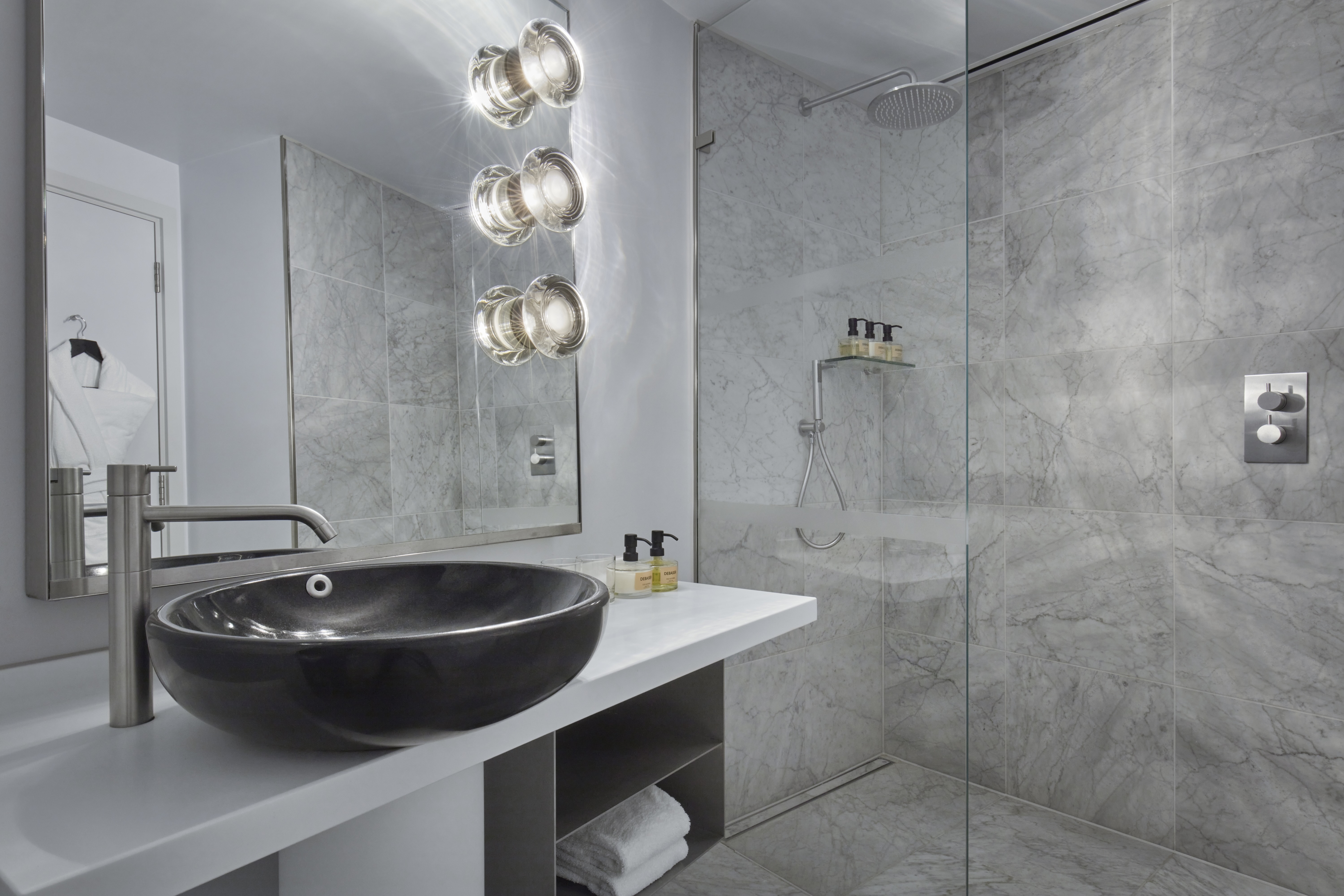 Inside, Tom Dixon-designed details meet home-from-home comfort; sumptuous beds, marble bathrooms with rainfall showers, and thoughtful touches that make every stay feel effortless.