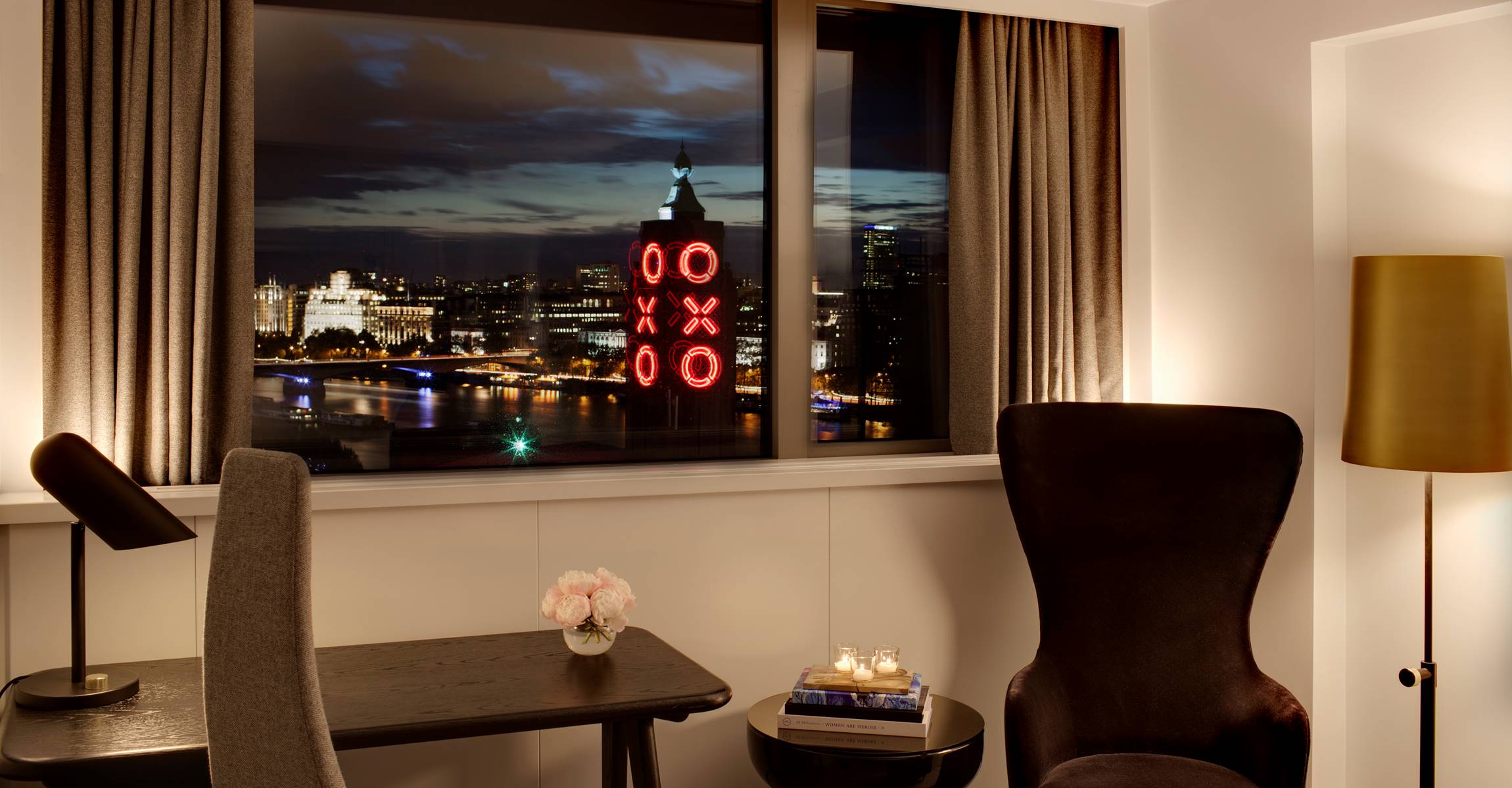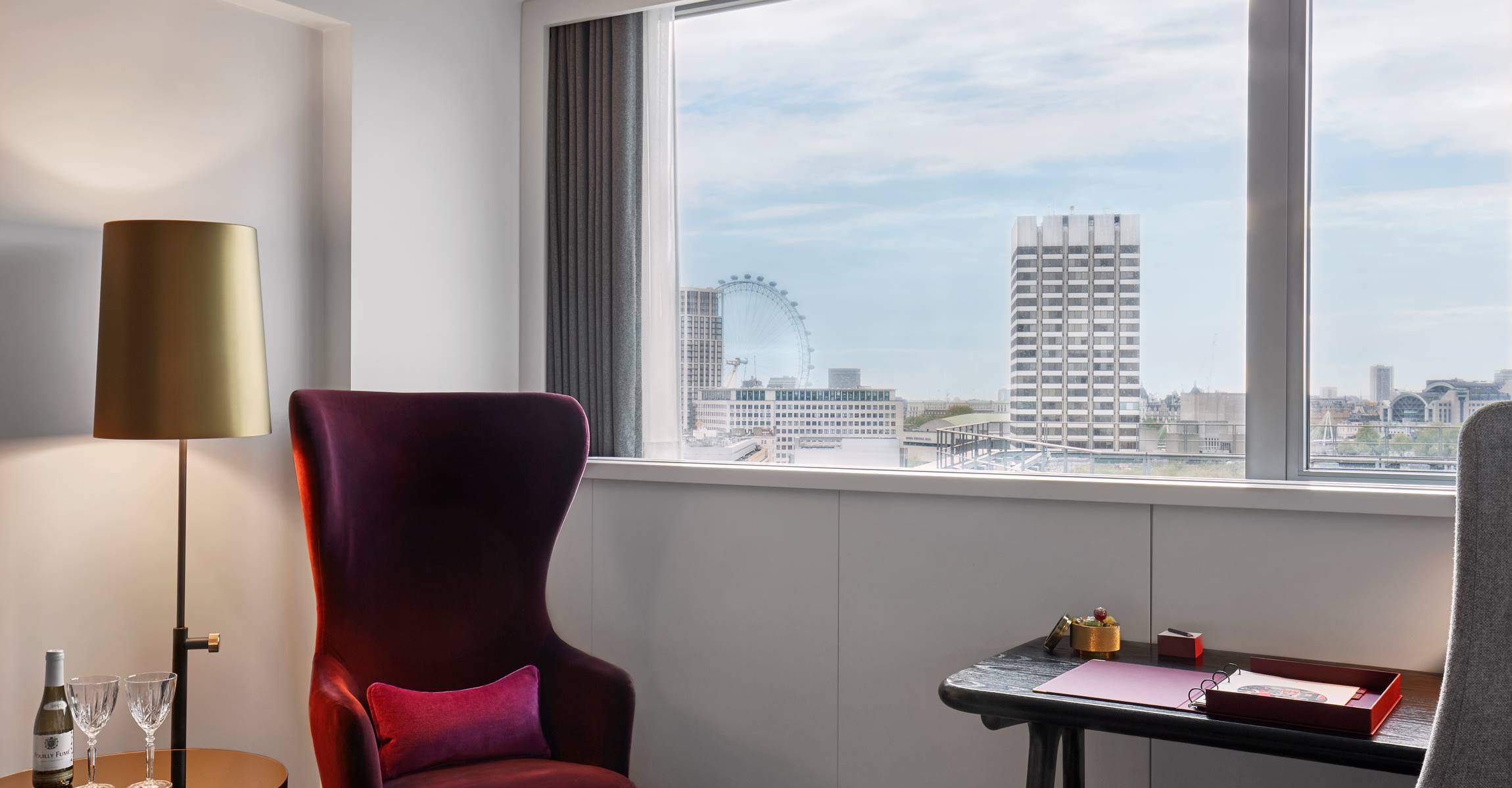 Our spacious River View Deluxe rooms are positioned above the Thames, with exceptional views of London from the wall-to-wall windows.