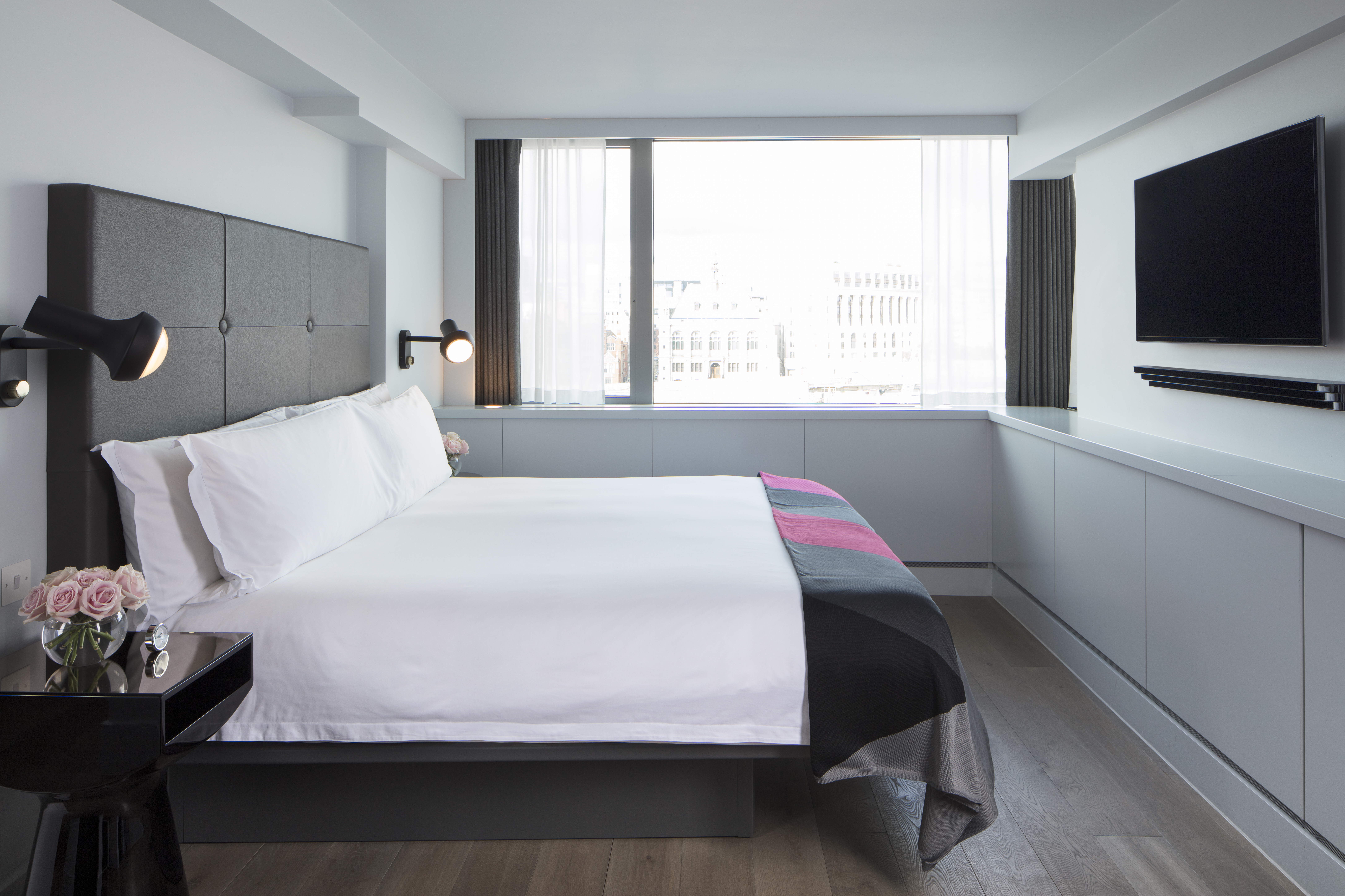 Our One Bedroom Suites offer a spacious en-suite bedroom which opens into a separate living area, featuring bespoke designed furnishings. Guests can relax in a signature wingback chair or comfortable sofa, or focus on work at the desk.